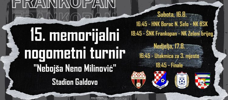 Nogometni entuzijasti i ljubitelji sporta ponovno će se okupiti na stadionu Galdovo kako bi sudjelovali u 15. memorijalnom nogometnom turniru “Nebojša Neno Milinović”. Ovaj turnir, koji se održava u čast Nebojše Nene Milinovića, postao je neizostavan događaj u lokalnoj zajednici, okupljajući ekipe i navijače