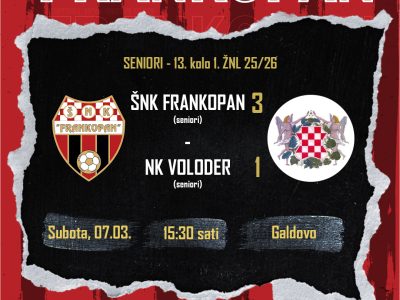 Odličan početak proljetnog dijela sezone 8. ožujka 2026. Seniori Frankopana jučer su odigrali 13. kolo i pobjedom započeli proljetni dio sezone. Nije dobro počelo za nas, Voloder jedanaestercom dolazi do... Read More0