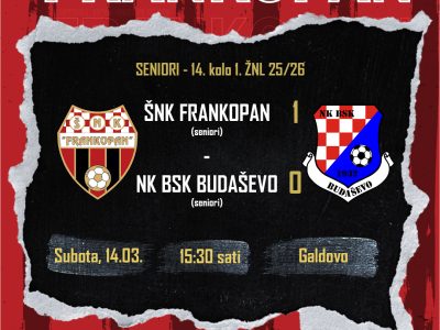POBJEDA SENIORA u 14. kolu protiv BSK-a! 14. ožujka 2026. Golom Roberta Radakovića s 11 metara u 60. minuti utakmice Frankopan dolazi do nova tri boda. Utakmica se očekivano pokazala zahtjevnom ali... Read More0
